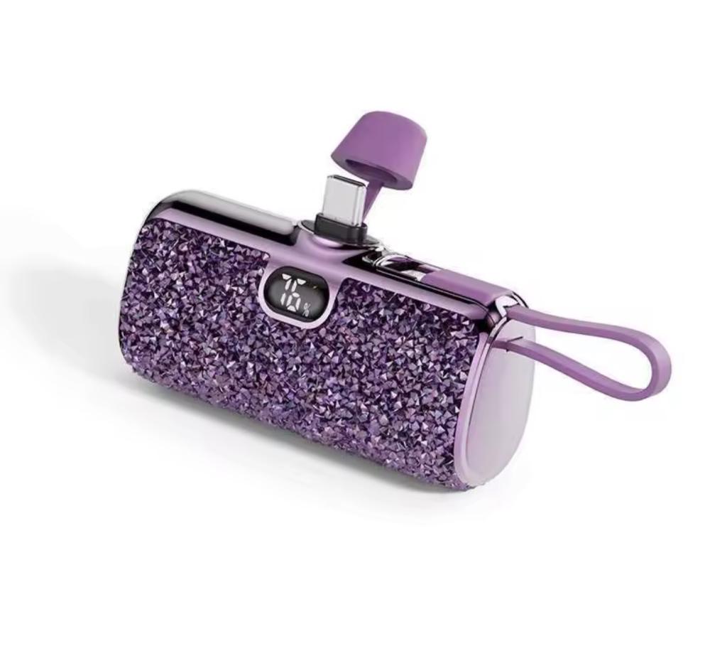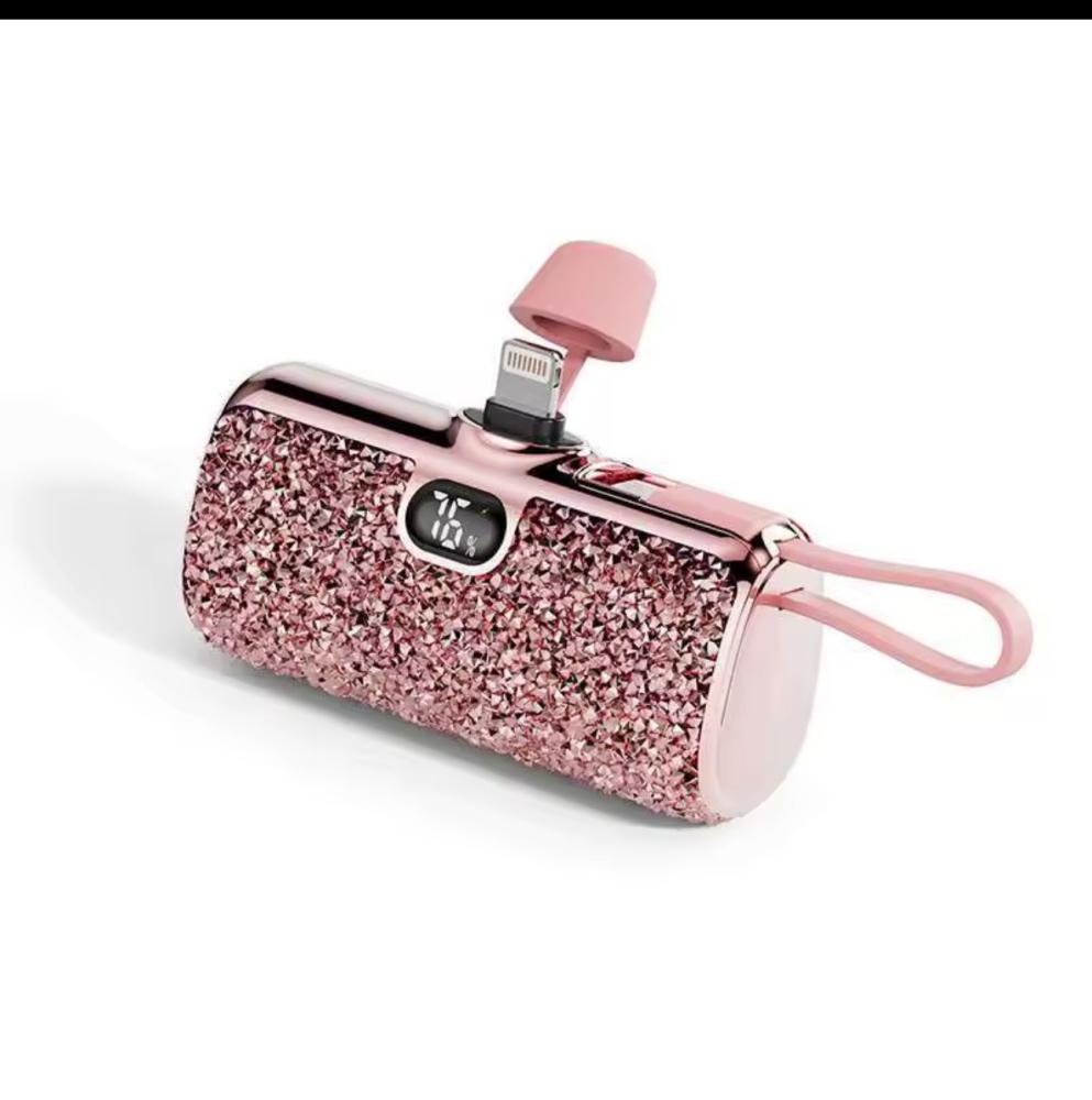 بنك طاقة (باور بانك) محمول بتصميم أنيق وفاخر، وغالبًا مخصص للنساء أو لمن يفضلون التصميمات العصرية المزينة بالكريستال.